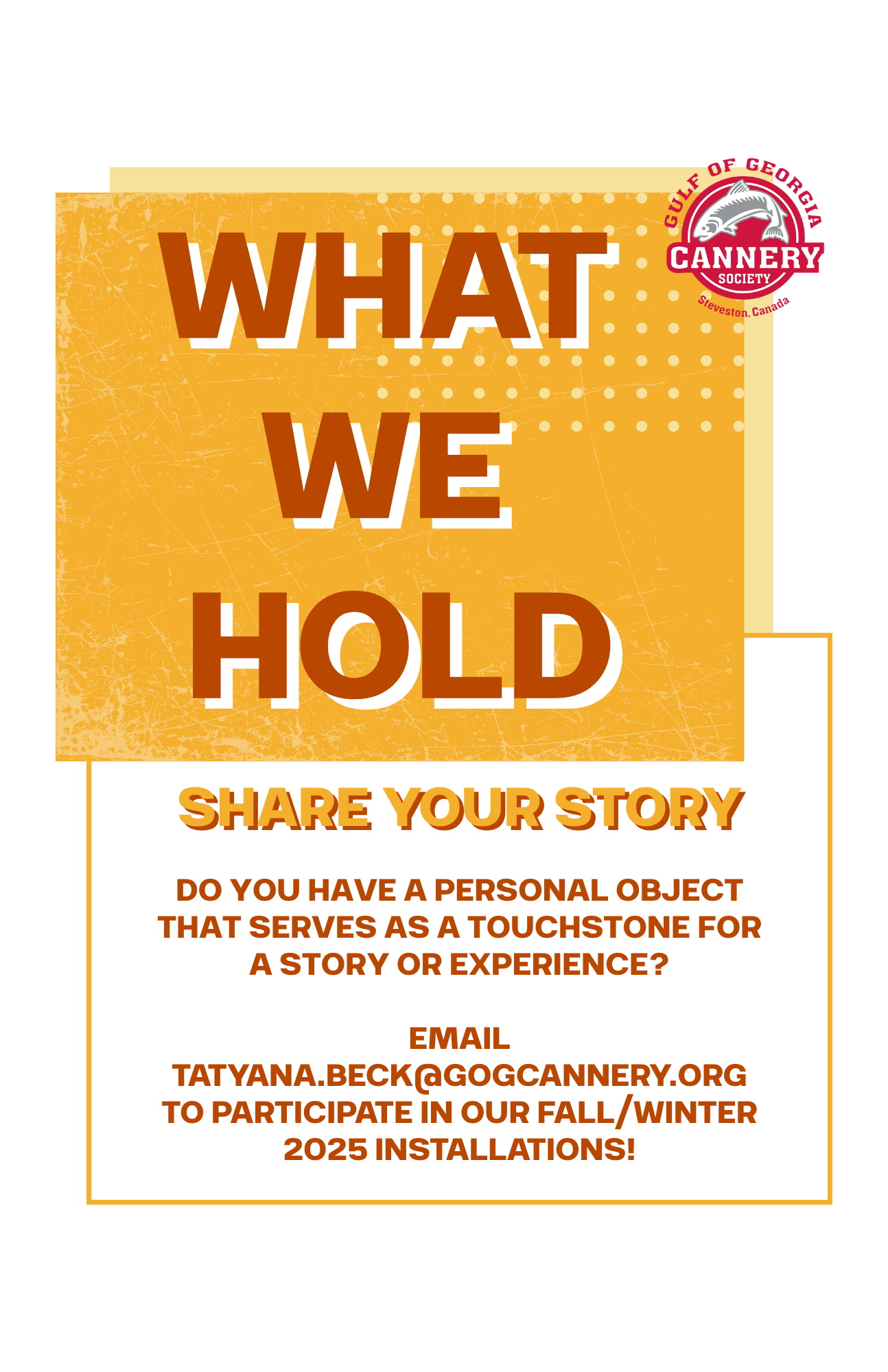 For more information on this project and how to participate, please see the attached Call for Participation and/or visit our website at https://gulfofgeorgiacannery.org/pop-up-exhibit-collaboration/. If you live nearby, don’t hesitate to visit the Gulf of Georgia Cannery National Historic Site to see the contributions for yourself; in addition to this month's theme, we have exciting monthly themes coming up for the rest of 2025!