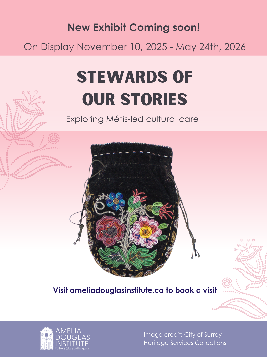 Stewards of Our Stories: Exploring Métis-Led Cultural Care opens November 12 at the Amelia Douglas Institute!