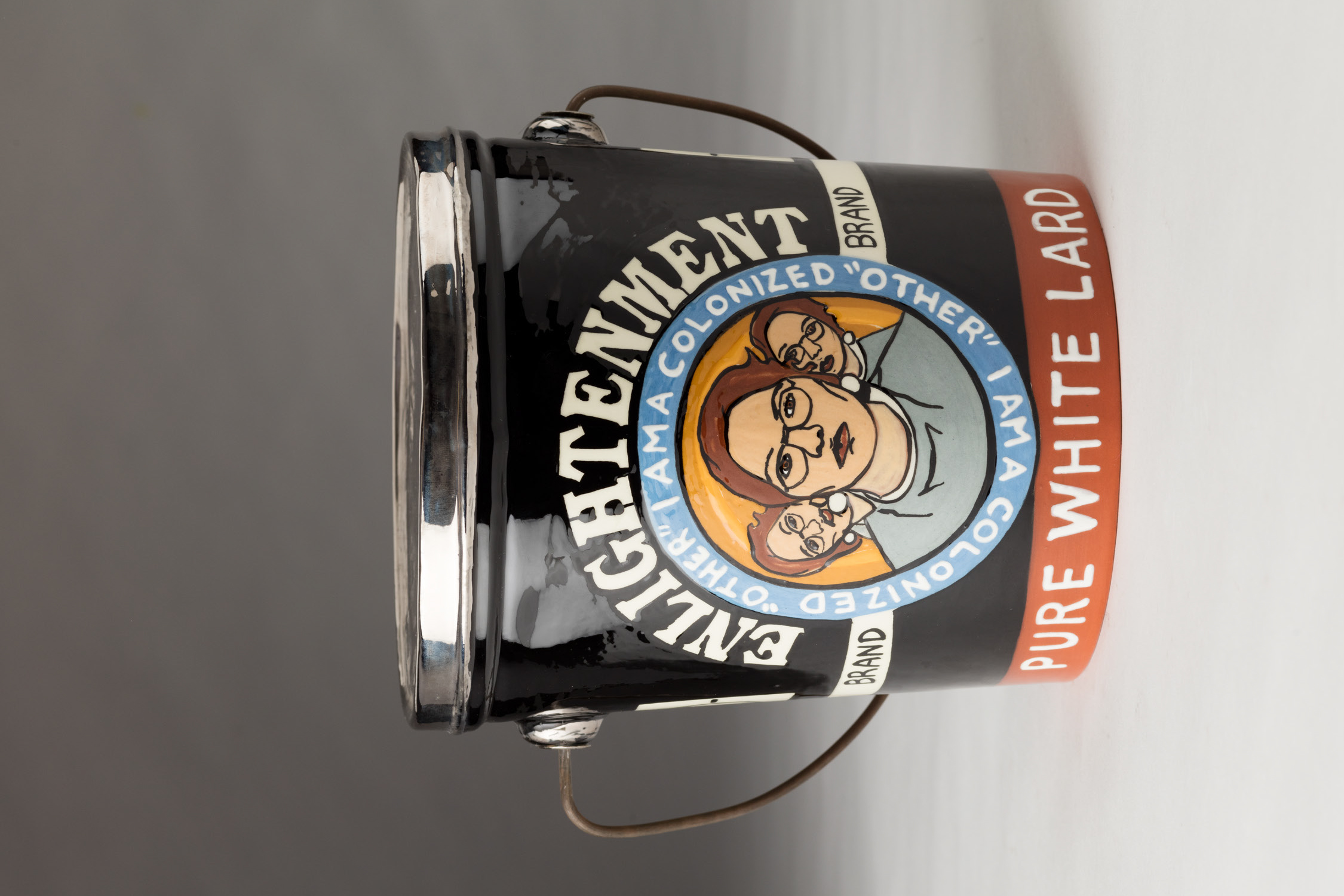 Judy Chartrand, Enlightenment Brand, 2001. Slip-cast clay, underglaze, lustre. © Judy Chartrand. Courtesy Rennie Collection, Vancouver. Photo: Kenji Nagai.