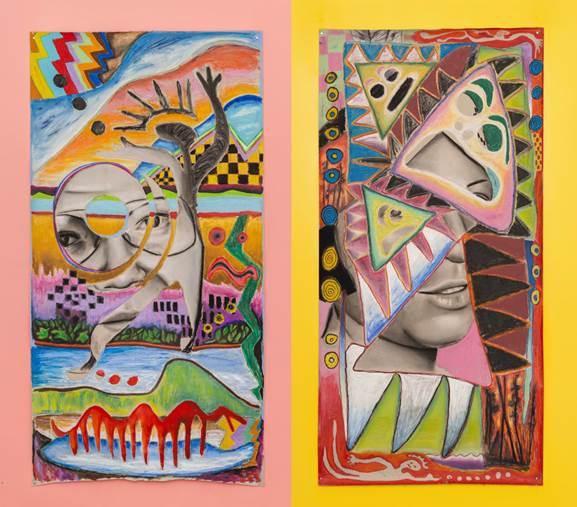 Image credit: : Manuel Axel Strain, Everything will be okay until coyote is here, 2025, oil and chalk pastel on paper affixed on MDF panel (detail), Oxygen Art Centre, Photo: Kenton Doupe