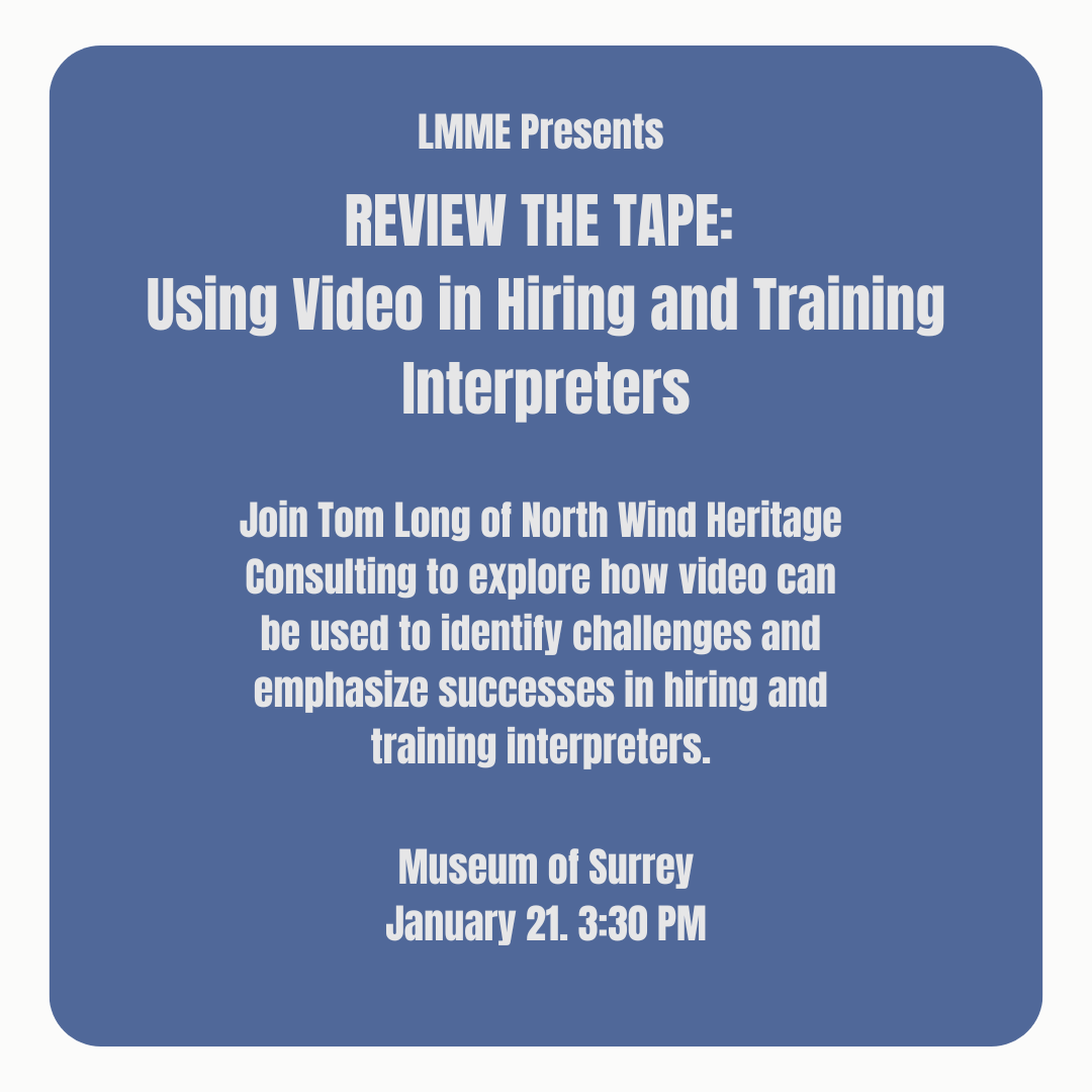 [BCMA] RSVP Now! LMME Speaker Series: REVIEW THE TAPE: Using Video in Hiring and Training Interpreters